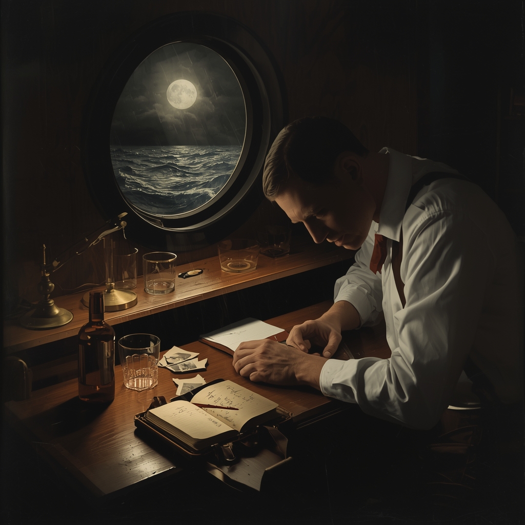 O navio balançou levemente. Onda maior. Hans segurou-se na mesa, esperou o equilíbrio retornar. Lá fora, o oceano estava calmo. Mas dentro da cabine, dentro de Hans, a tempestade nunca cessava.