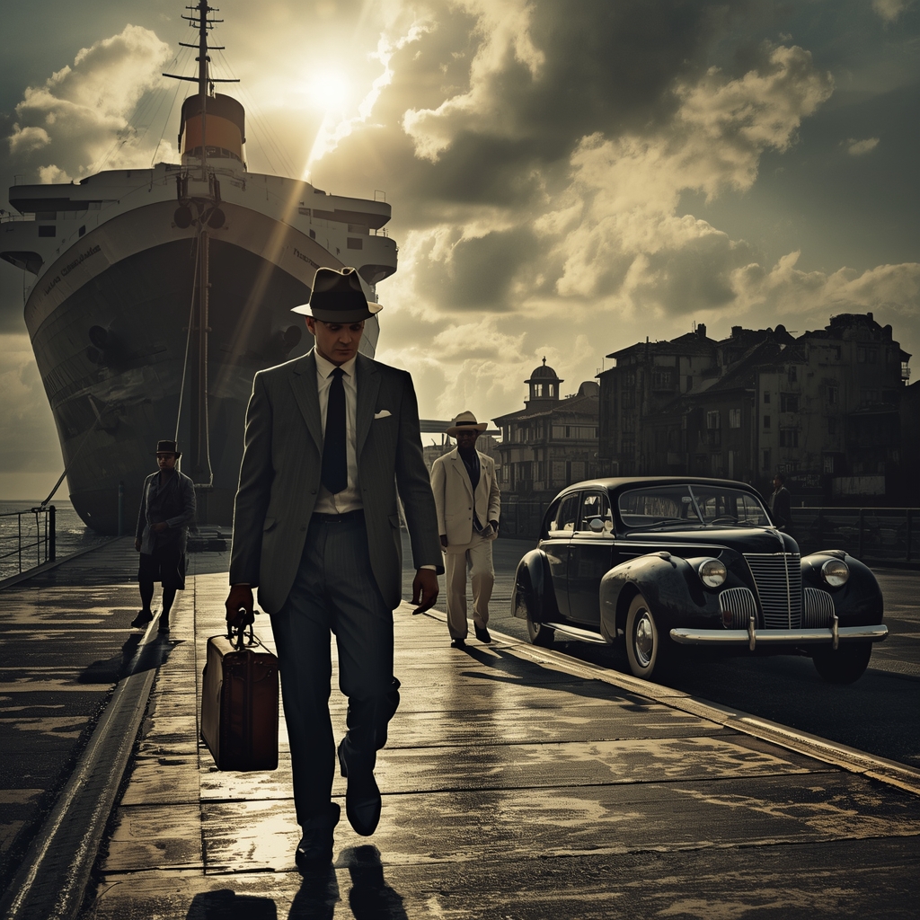 O ar era diferente. Quente. Úmido. Cheiro de mar, café e algo indefinível – tropical, exótico, perturbador. Não era Munique. Não era Alemanha. Era outra coisa. Outra vida. Um homem aguardava ao lado de Ford preto. Terno branco de linho, chapéu panamá, óculos escuros. Friedrich Adler.