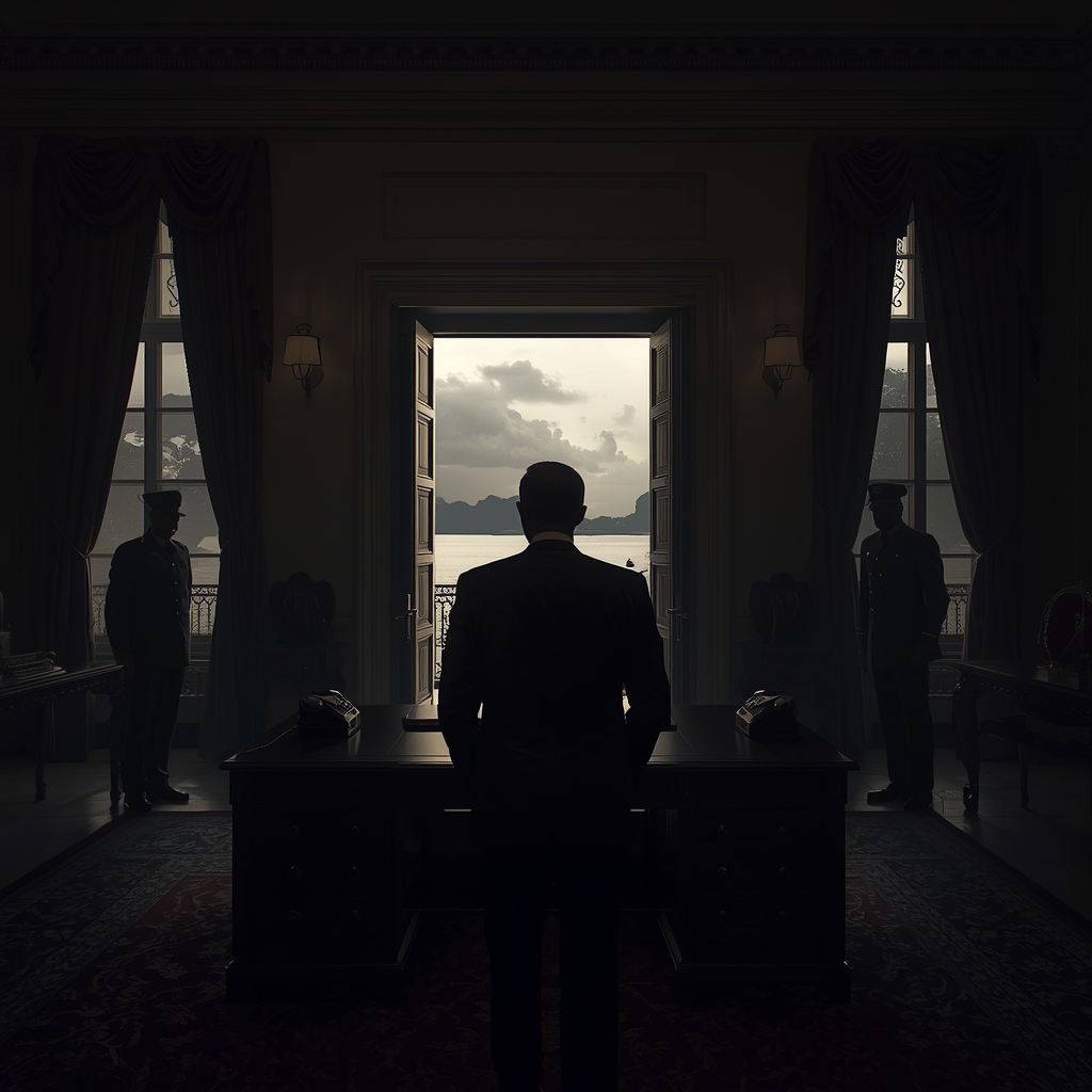 Getúlio levantou-se, caminhou até a janela. Lá fora, o Rio de Janeiro dormia. Ou fingia dormir. Porque em noites de golpe, ninguém realmente dorme. Todos esperam. Aguardam. Temem.